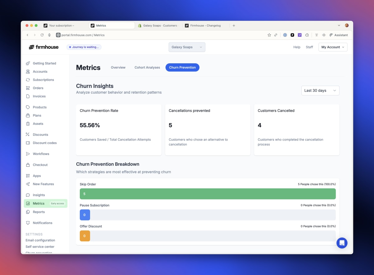 We're introducing a new way to understand and address subscription cancellations. This feature helps merchants reduce churn and understand its root causes, making it easier to take meaningful action and improve customer retention.