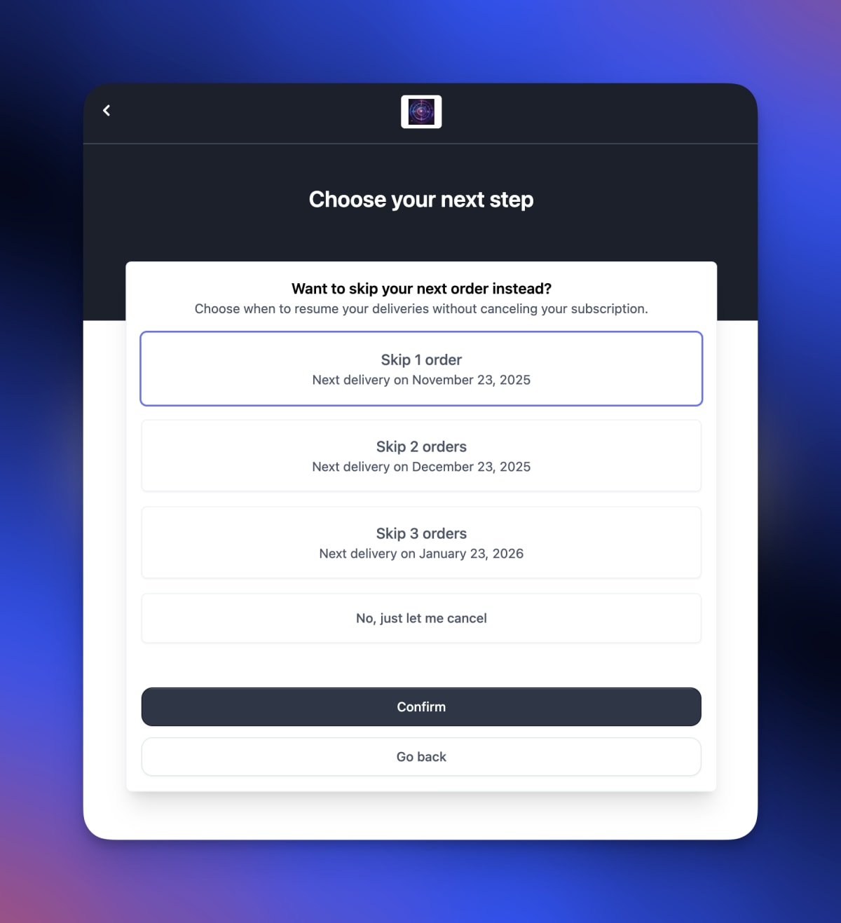 Delaying the next shipment for a set number of orders
